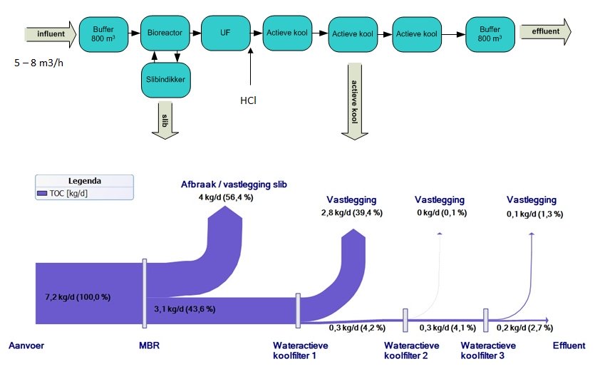 Triqua International was requested to test on Lab scale and on Pilot scale the wide variety of advanced techniques on the several waste flows. The available techniques where physical/chemical, biological, oxidation, adsorption and membrane technology. This resulted in a basic Pilot treatment system with the combination of membrane- and adsorption technology. The best available technology was demanded in order to fulfil the legislation standards.